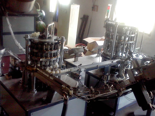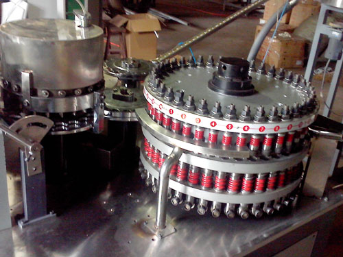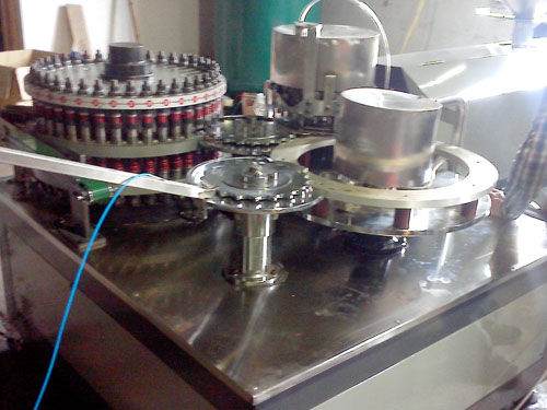 鋁蓋、塑料蓋、內(nèi)墊片滴塑機(jī),主要用于制作防盜鋁蓋和塑料瓶蓋的內(nèi)墊片,因內(nèi)墊料比瓶蓋料軟,經(jīng)高溫塑化后壓塑到瓶蓋內(nèi),使內(nèi)墊和瓶蓋粘和成一體,能牢牢粘貼在瓶口,有效地封鎖住瓶?jī)?nèi)的飲料和氣體,確保飲料中所含的碳酸度,解決了漏水漏氣的問(wèn)題,符合國(guó)家食品衛(wèi)生標(biāo)準(zhǔn)。